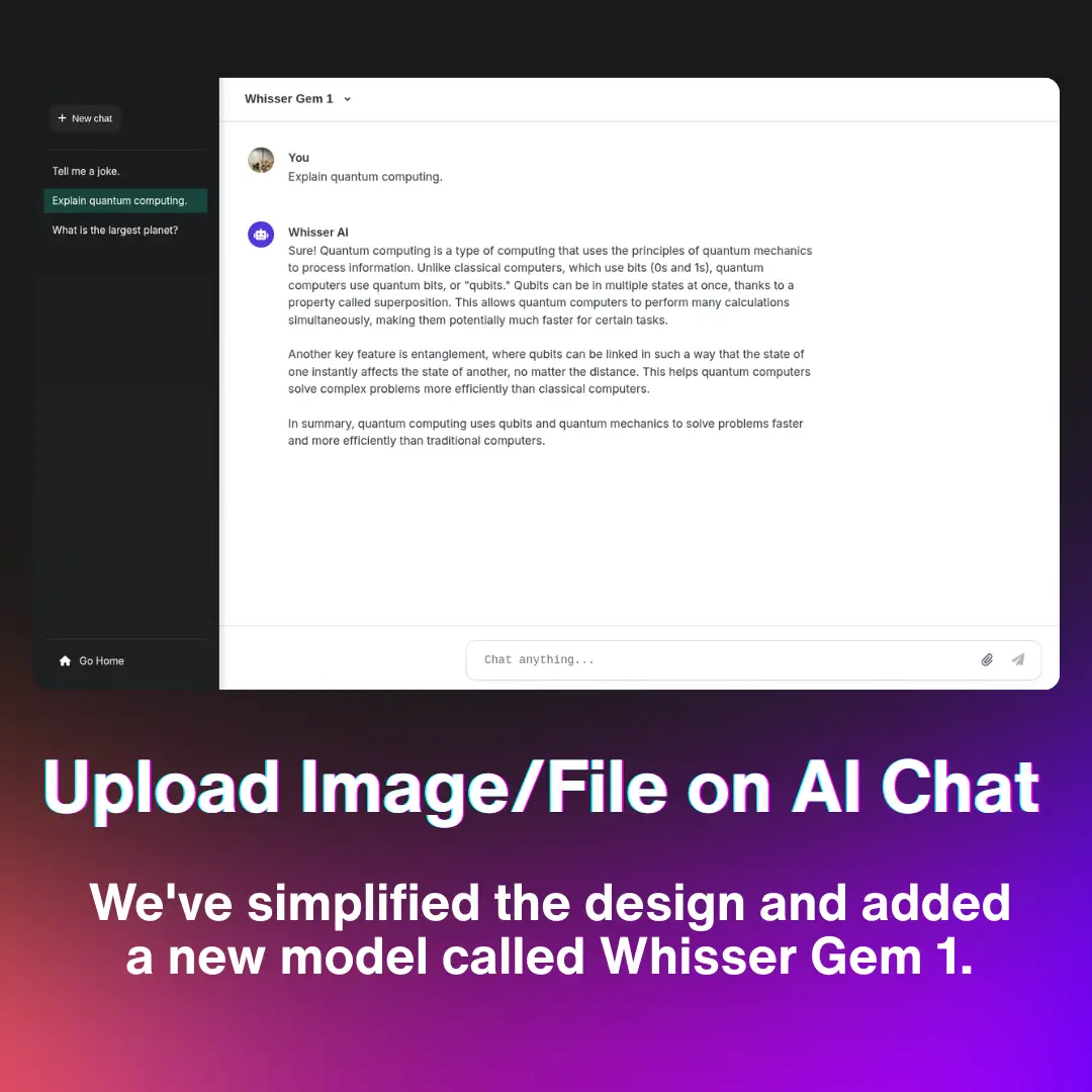 π Big things are coming this February! Weβre launching brand-new tools for everyone, including: π Our very own CMS to write & publish articles π° A Revenue Sharing Program β earn through ads & template development π€ Whisser AI V4β create, play YouTube videos, music, movies sourced online inside the chatbot π¨ Canvas β the successor to PhotoCreate β¦and many more tools on the way! Stay tuned, the future is just getting started π₯β¨