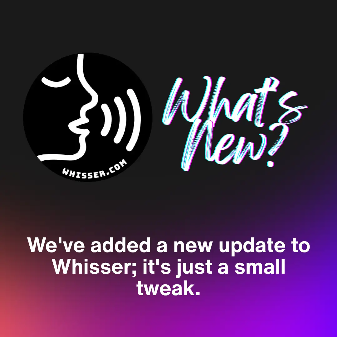 π Exciting update on Whisser! π π We've revamped the WAM page for a smoother experience π You can now follow users & check their profiles π§ New tools: Link Lock, Photo Create, & AnonChat β‘ Plus, we've made Whisser faster than ever with subtle tweaks you'll feel!