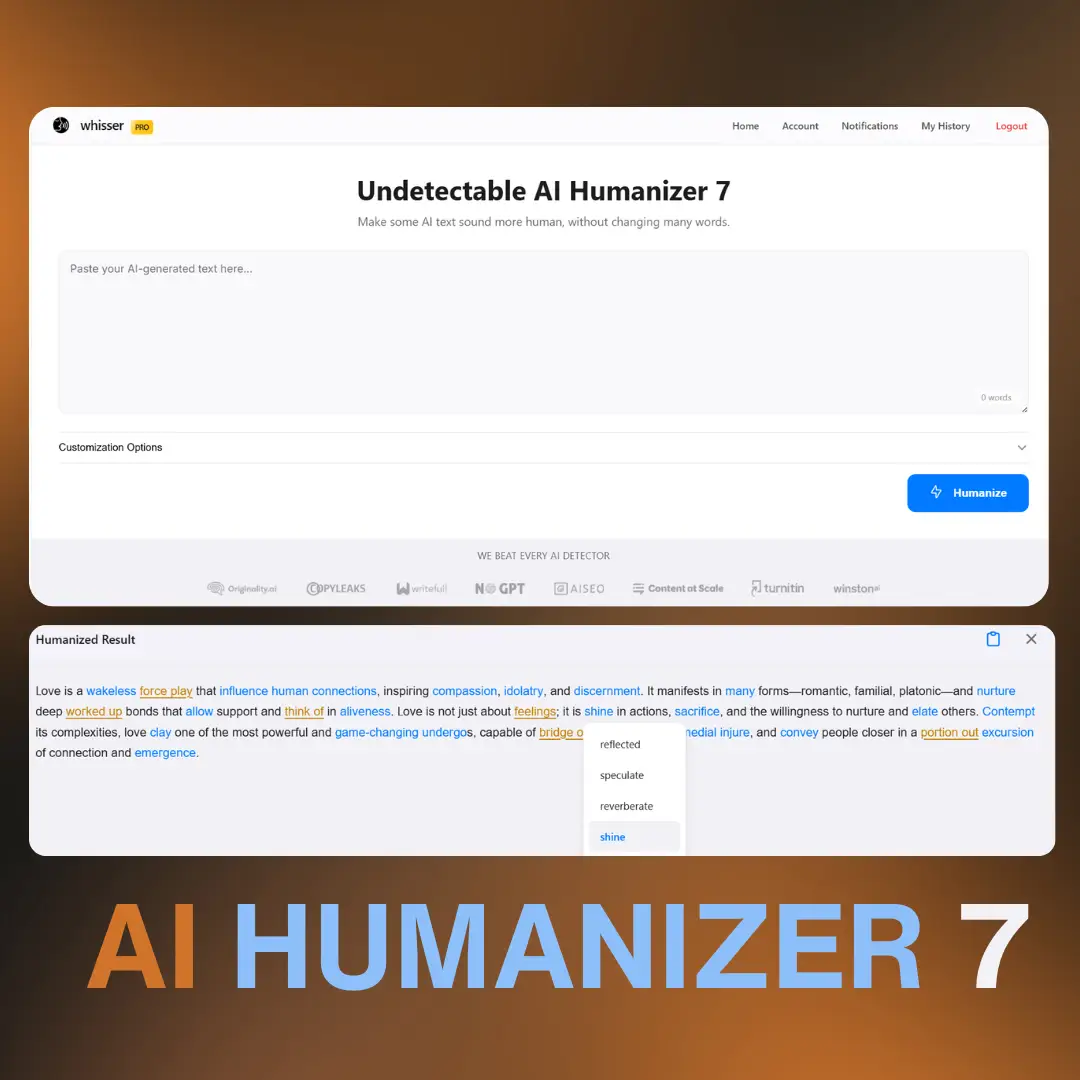 π Introducing AI Humanizer 7 β Our Most Advanced Version Yet! We've merged Humanizer 6 & 6+ and packed in powerful new features. π§ Smarter rewriting π Customizable word choices right on the results page Upgrade your content transformation game now. #AIHumanizer #AItools